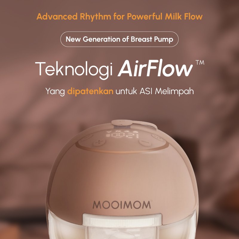 MOOIMOM AirFlow™ Breast Pump M3 Pro. Dilengkapi teknologi AirFlow™ yang dipatenkan, pompa ini menghadirkan ritme dan kekuatan hisapan khusus yang membantu merangsang aliran ASI lebih lancar, deras, dan maksimal tanpa rasa sakit atau tersendat.